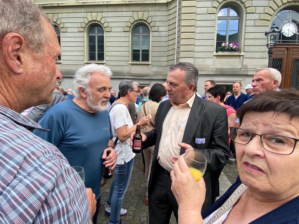 Anschliessend traf sich die SVP-Fraktion auf dem Rathausplatz beim „SVP bi de Lüt“ zum lockeren Austausch mit den Glarnerinnen und Glarnern. Ein tolles Erlebnis! Und jetzt heisst es: Gas geben, noch 11 Tage bis zum Abstimmungs-Termin vom 18. Juni, wo wir klar NEIN sagen zum teuren und verlogenen Stromfresser-Gesetz (alias Klima-Gesetz)!