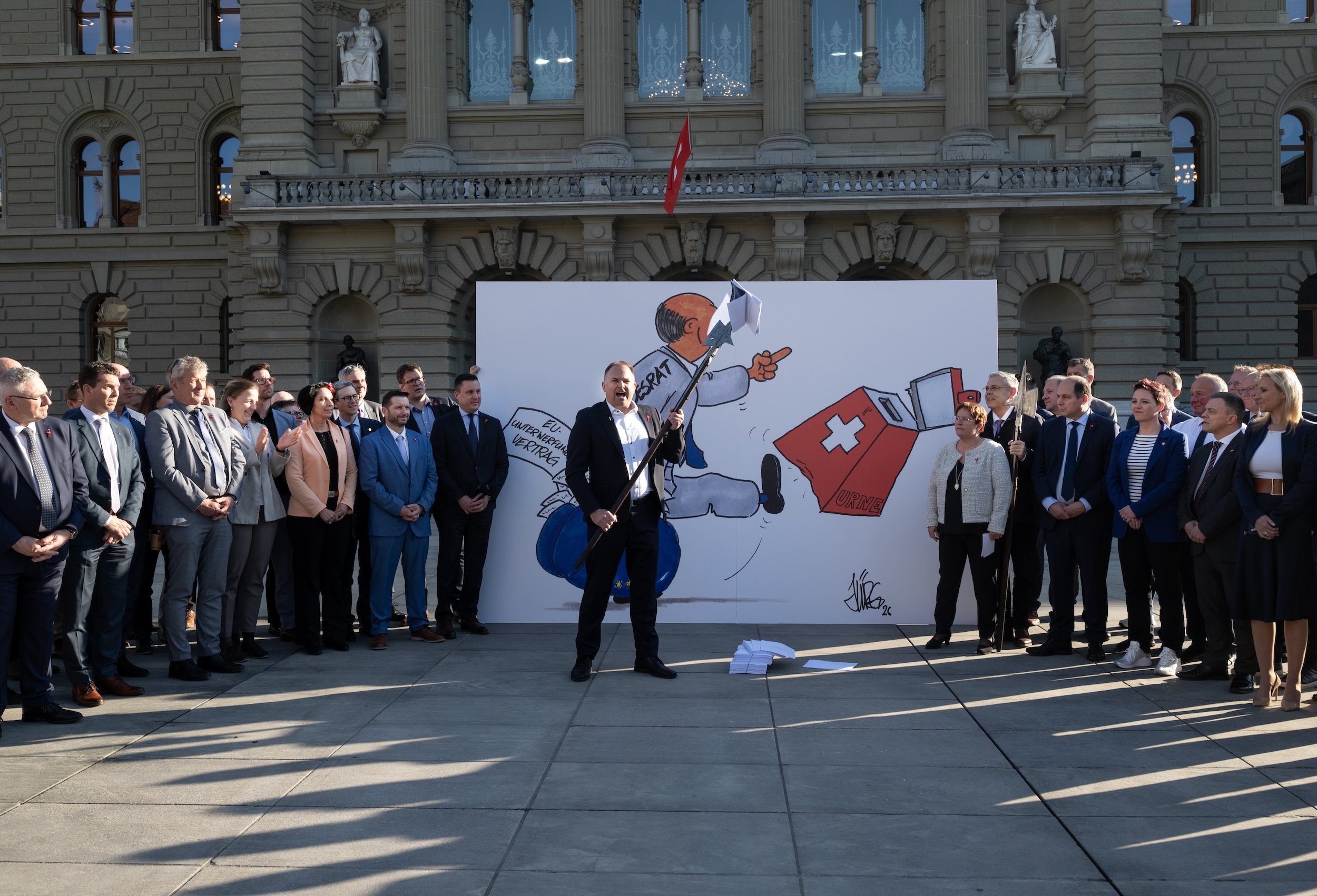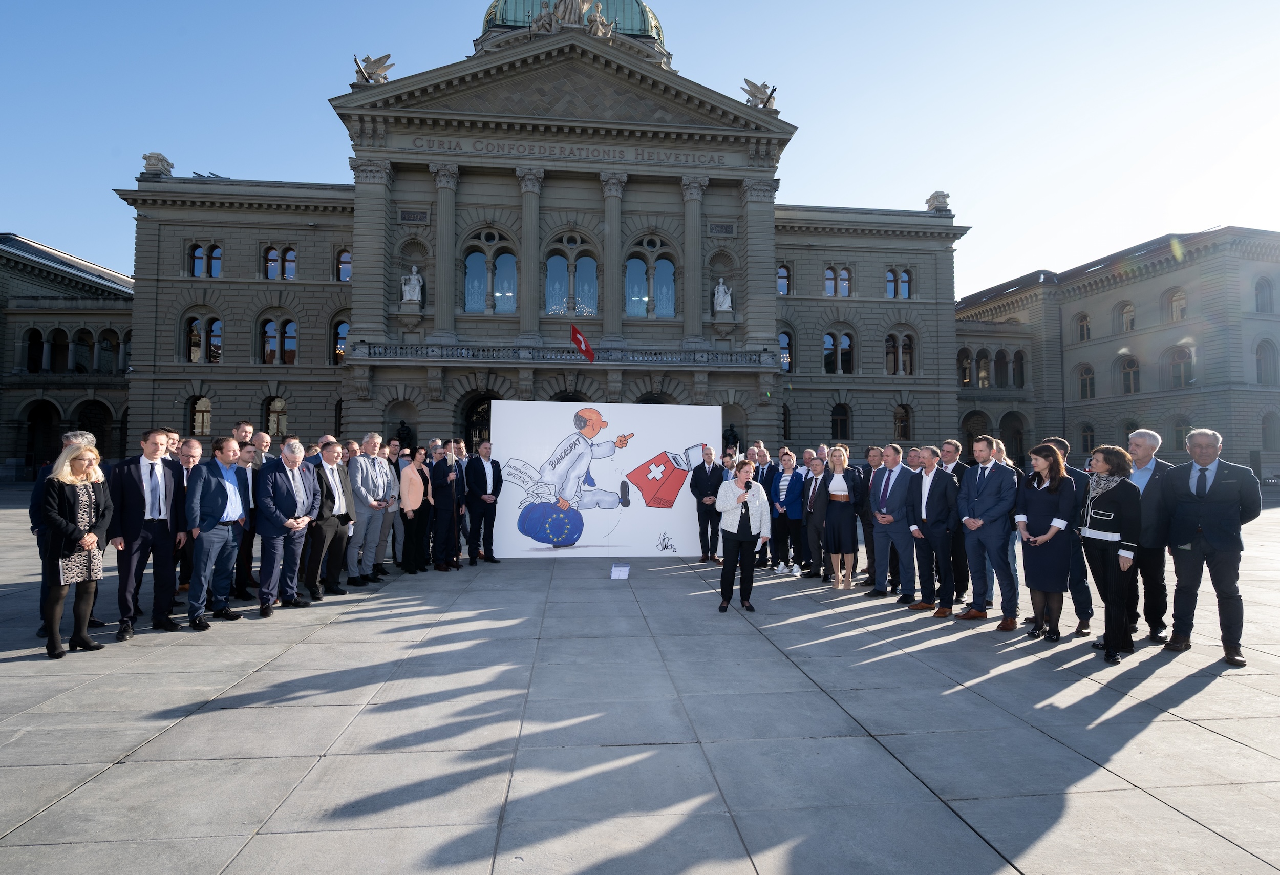 So nicht! In einer gemeinsamen Aktion protestiert die SVP-Fraktion auf dem Bundesplatz gegen dieses demokratiefeindliche Vorgehen.