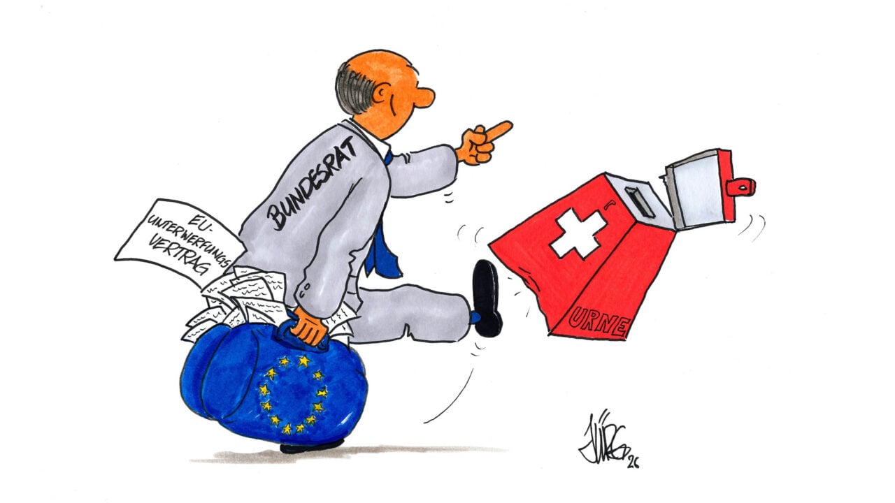 Das Vorgehen des Bundesrates ist ein Affront sondergleichen: Er pilgert jetzt schon nach Brüssel und unterschreibt folgsam den neuen EU-Vertrag. Mit diesem Unterwerfungsvertrag muss die Schweiz automatisch EU-Recht und die ganze EU-Bürokratie übernehmen. Heute und in alle Zukunft. Bei Streitfällen hat der EU-Gerichtshof das letzte Wort. Und dafür sollen wir Schweizer Steuerzahler sogar noch jedes Jahr Milliarden Franken an die hochverschuldete Krisen-EU abliefern.