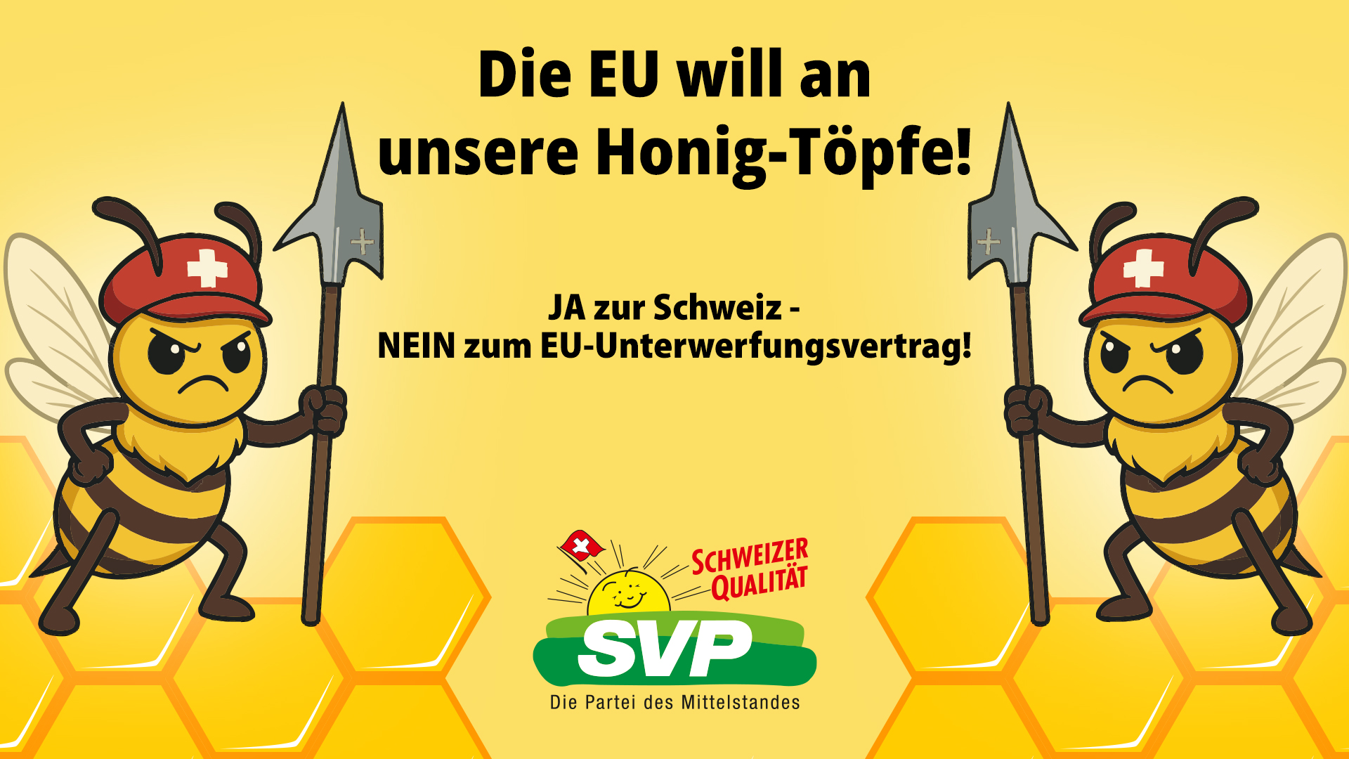 Vor dem Mittag erlebten die SVP-Delegierten eine Auktion der besondere Art. Ein Imker aus Zürich hat der SVP Schweiz 50 Kilo seines eigenen Honigs gespendet. Er will anonym bleiben, aber den Kampf für die Schweizer Unabhängigkeit unterstützen. Unter dem Titel «Die EU will an unsere Honig-Töpfe!» versteigerte alt Nationalrat Res Aebi unter tosendem Applaus die ersten drei ersten Honig-Gläser. Der Erlös der Auktion in der Höhe von 5000 Franken fliesst in die Kampagne gegen den EU-Unterwerfungsvertrag.