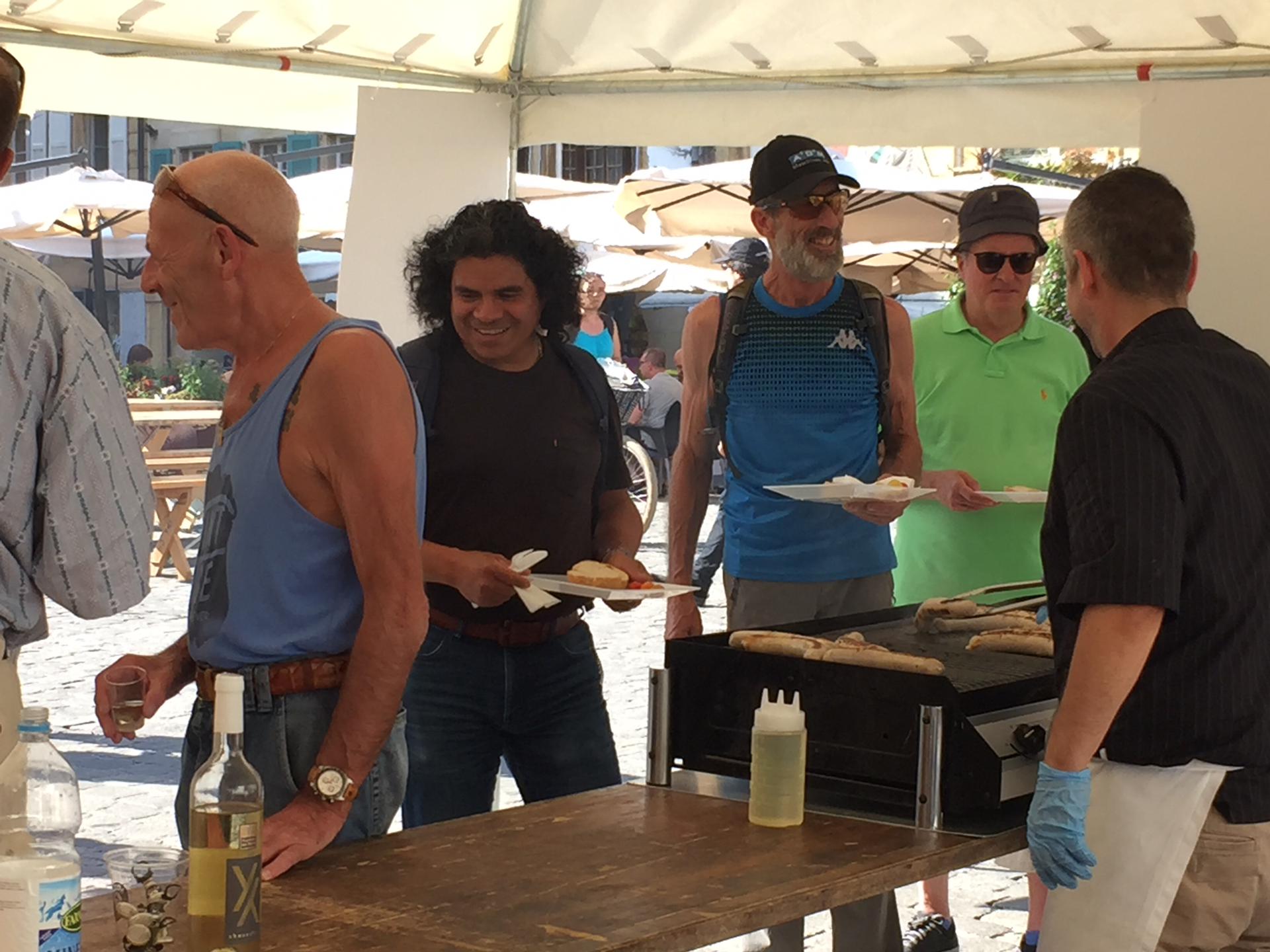 Im Anschluss an die Sitzung traf sich der Parteivorstand auf dem Place Pestalozzi in Yverdon bei strahlendem Sommerwetter mit der örtlichen Bevölkerung zu einem SVP bi de Lüt.