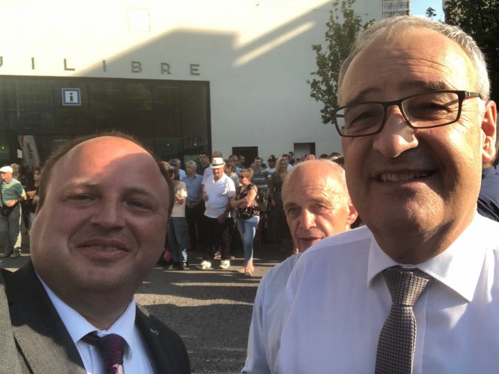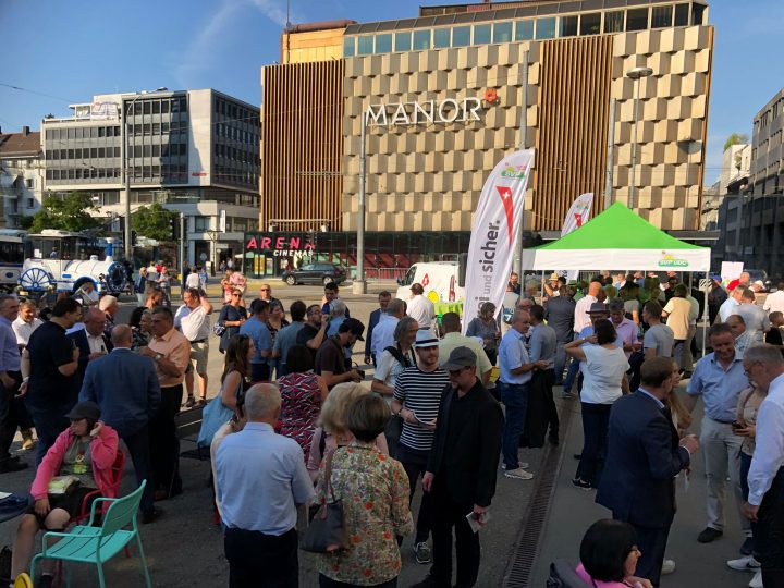 Im Anschluss an die Sitzung traf sich der Parteivorstand auf der Place Jean Tinguely in Freiburg bei strahlendem Sommerwetter mit der örtlichen Bevölkerung zu einem SVP bi de Lüt.