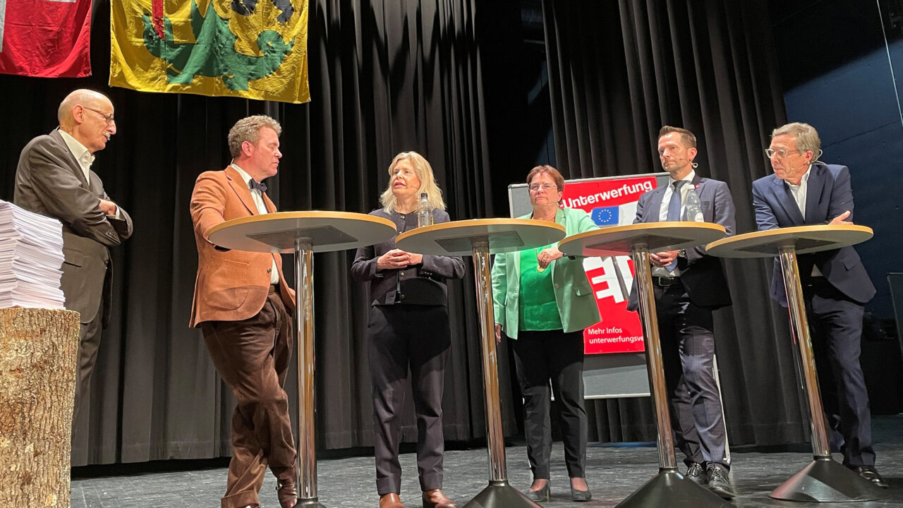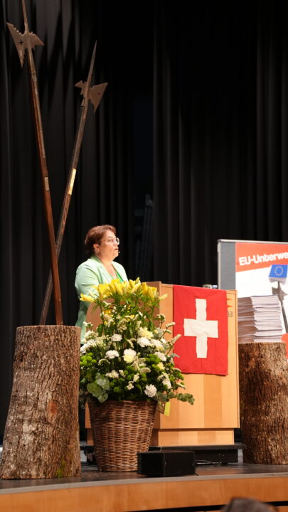 In einem flammenden Schlussappell rief sie zum Widerstand gegen den Vertrag auf: «Nein zu fremdem Recht und Richtern sowie Strafmassnahmen und hohen Zahlungen – Ja zu Freiheit und Wohlstand».