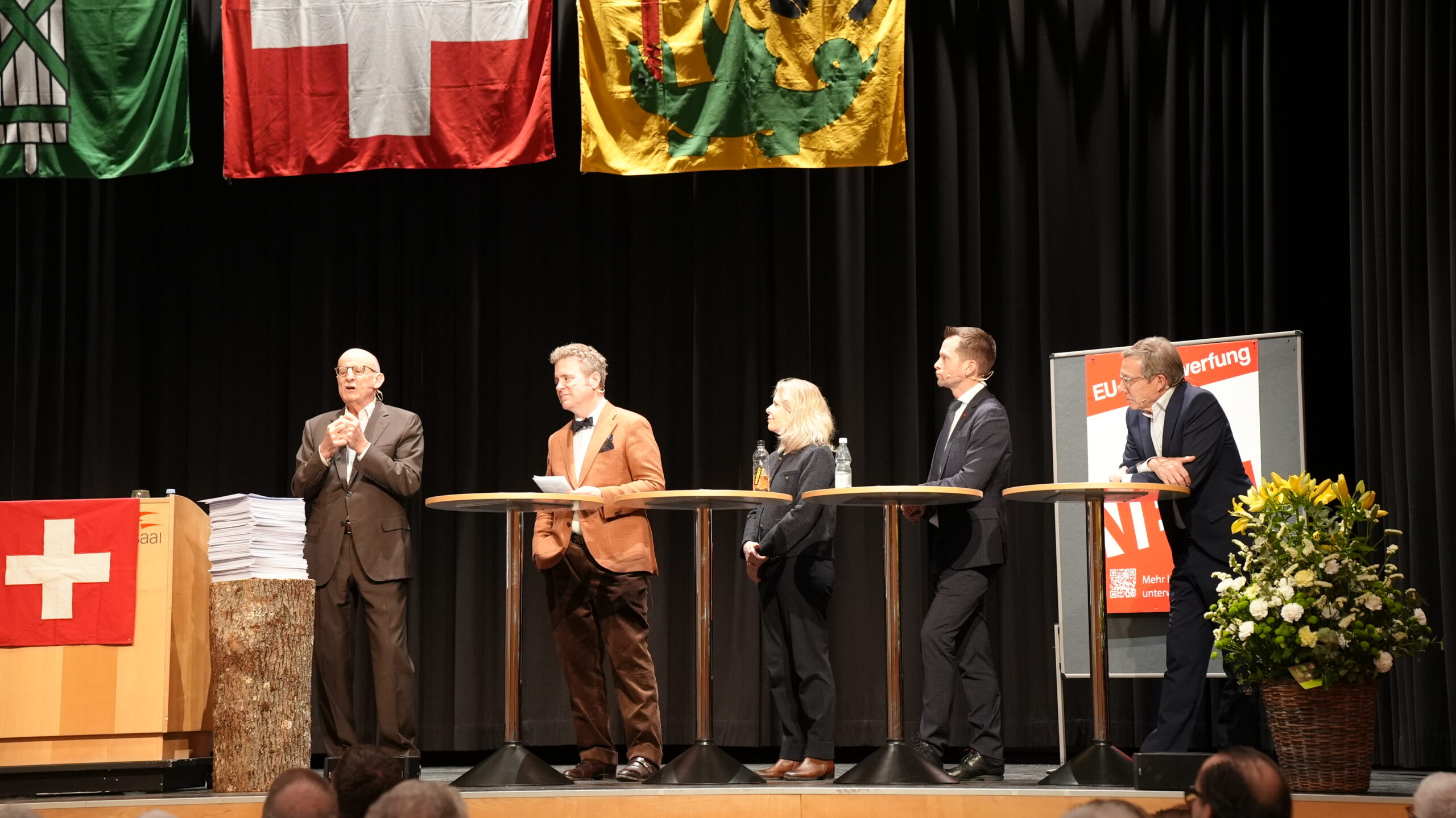 In Gossau SG fand ein Informationsanlass zum geplanten EU-Vertragspaket statt. Nationalrätin und Unternehmerin Magdalena Martullo-Blocher zeigte in ihrem Referat die verheerenden Auswirkungen auf die Schweiz auf. Des Weiteren diskutierten hochkarätige Vertretungen aus Wirtschaft und Politik die Folgen der dynamischen Rechtsübernahme, die anfallende finanzielle Belastung sowie die Folgen in den Bereichen Verkehr, Zuwanderung, Gesundheit, Lebensmittel, Landwirtschaft und Strom. Mit 800 teilnehmenden Bürgerinnen und Bürgern verzeichnete der Anlass einen Grossaufmarsch.