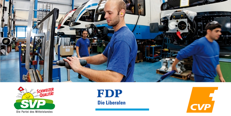 SVP, FDP.Die Liberalen und CVP zeigen auf, wie die Schweiz auch in Zukunft ein erstklassiger Ort zum Leben und Arbeiten bleibt. In erster Linie benötigt der Werkplatz Schweiz verlässliche und attraktive Rahmenbedingungen.
