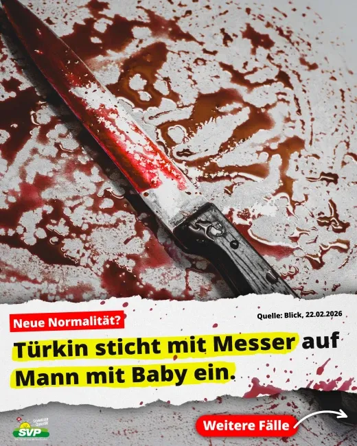 Raubüberfalle, Vergewaltigungen, Messerstechereien und Einbrüche sind an der Tagesordnung. Insbesondere kriminelle Asyl-Migranten verüben teils schwerste Gewalttaten. Das herrschende Asyl-Chaos gefährdet die innere Sicherheit der Schweiz und kostet die Steuerzahler Milliarden. Statt die Grenzen zu kontrollieren, verweigert der verantwortliche SP-Bundesrat Jans griffige Massnahmen zum Schutz der eigenen Bevölkerung.